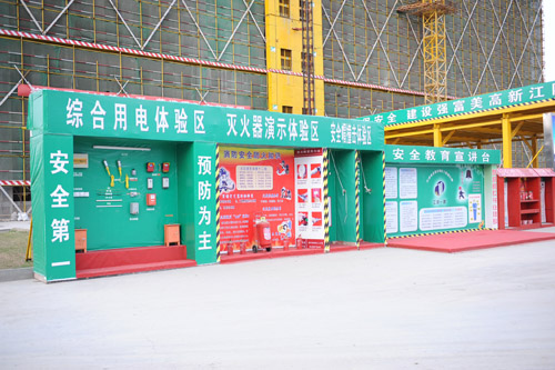 公司新建业务用房设有安全教育体验区,包括综合用电体验区、灭火器演示体验区、安全帽撞击体验区及安全教育宣讲台等功能区,从视觉、听觉、触觉方面让施工者提高自我安全意识,提升突发事件应急处置能力,确保安全施工。