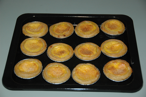 忙活了大半天,蛋挞终于出炉了,金黄松脆、香飘四溢的蛋挞,受到了同事们的热心青睐。