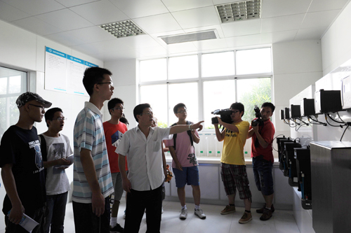 才上午8点,室外就已是烈日炎炎,闷热难耐,但却丝毫没有减弱这些准大学生们的兴致,第一次亲近水厂,学子们对这里的一切都充满了好奇。