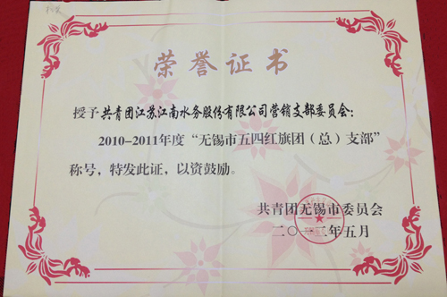 公司营销团支部荣获“无锡市五四红旗团支部”称号