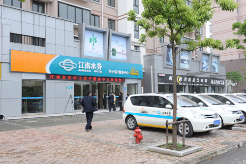 为积极响应、服务于我市开展的城镇化建设,公司在华士镇选定有利地段-环南路49号,筹建华士客服中心。目前,华士镇共有供水用户9万户,此次客服中心建设按照标准化服务窗口的总体要求,设有业务受理区、形象展示区、用户接待区、业务代办区等功能区域,配备了叫号系统、监控系统、液晶电视、LED屏等设施,并根据vis(视觉识别系统)的统一标准,明确了背景墙、接待室、门面灯箱、墙体、玻璃贴等的色调、规格、字体和风格,为公司营业网点的标准化建设树立了一个样板,更为广大用户营造了一个舒适、便利的服务环境。