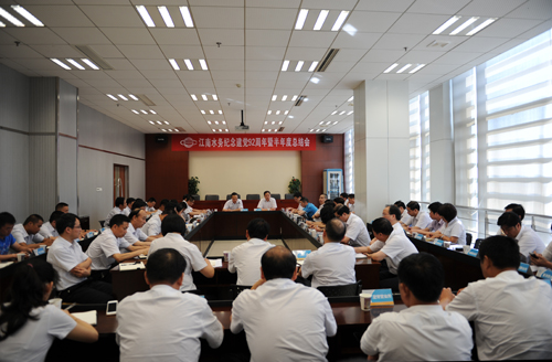公司党委书记、董事长龚国贤肯定了上半年度公司所取得的成绩;同时要求公司上下,凝心聚力,积极进取,一、认真学习十八大精神,学习贯彻党中央新一届领导集体关于“稳增长、转方式、抓改革、保民生,做好全年经济工作”的指示精神,学习贯彻江阴市委关于率先基本实现现代化、建设现代化滨江花园城市的工作部署,进一步统一思想、振奋精神;二、紧贴宏观经济实际,紧跟我市滨江花园城市建设,将安全保供、服务江阴经济发展作为企业发展的根本来抓,切实抓紧、抓实、抓好,通过安全优质供水、优质服务,实现企业的优质发展;三、以效能化、规范化为抓手,以服务基层、服务发展为目标,以党员干部特别是中层干部为重点,学华西、学身边的先进典型,开展好新形势下的服务型党组织建设;四、担当表率,以实效带领员工、影响周围,时刻绷紧防腐拒变之弦,以清廉的形象,为党旗增辉、为党旗添彩。
