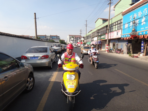 每天早上6点,巡查员便骑上电动车,开始一天的工作,由公司出发,途径虹桥南路、大桥路、黄山路、花园路、中山路、毗陵路、花山路、梅园路……每到一处排水检查井、雨水收集口,他们就放缓车速,停下车,仔细检查排水设施的完好情况,看见有破损的,就记下地址及排水设施的规格尺寸,及时安排维修。排水设施缺失了,或是破损程度已经威胁到过往行人、车辆的安全,巡查员就立即做好标记及防护措施,第一时间通知维修人员前来更换修复。地处偏僻区域的排水设施,常被树叶、塑料袋等杂物覆盖,每当看见这种情况,巡查员就马上清理干净,以免排水口被堵住、造成雨天路面积水。对放置不稳的窨井盖,巡查员就重新安置井盖,确保井盖稳当了,才进入下一个地点的巡查。