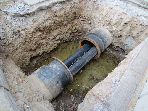 公司多部门参与,对原管网进行了细致地勘查及分析,最后商定,采用穿插U-HDPE管内衬修复旧管道技术,实行改造。此技术相对于传统的开挖换管方法,具有施工时间短、工程造价低、对路面交通影响小等优势。实施改造后,管道内壁光滑,不易结垢,使用年限得到了大幅度延长。