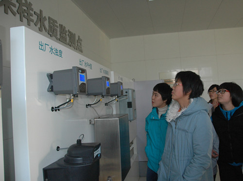 在公司解说员的带领下,师生们井然有序地参观了整个制水工艺流程,亲近体验由浑浊原水变为澄清出厂水的全过程,亲身感受现代化的净水技术。在开放式的教学中,学生们热情高涨,有的认真记录着,有的不时提出问题,“净水过程中,钙镁离子有变化吗?”“自来水用什么消毒?遇到上游污染情况,怎么处理呢?”……面对这些专业问题,现场解说员都一一作了解答。随后,师生们又来到供水服务调度中心,参观智能化的供水调度系统,从而增强了他们对长江自来水的认知。