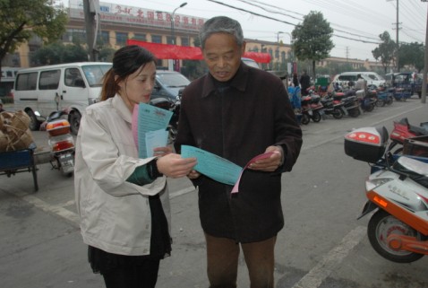 11月27、28日,客服中心、质量管理部、北国营业所、顾山营业所工作人员,顶着严寒来到北国、顾山街头,开展“江南梦·轮盘赌情”2013年走进乡镇服务活动。