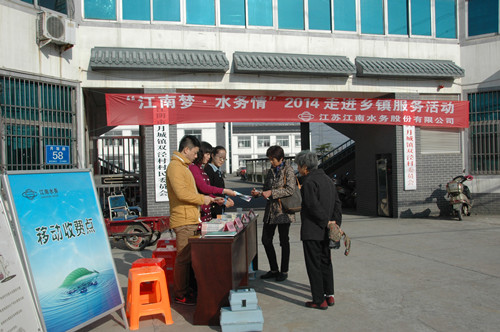 11月14日,2014年“江南梦·轮盘赌情”走进乡镇供水服务活动, 来到月城镇双泾村,贴近群众,用心服务。
