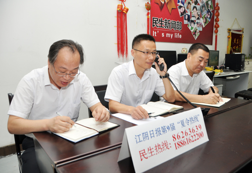 7月16日,公司工程管理部、质量管理部、客服中心负责人一行赴江阴日报社参加“夏令热线”栏目,为广大市民解答用水疑惑。