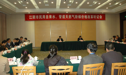 11月13日下午,市物价局召开江阴市民用自来水阶梯价格改革听证会,就居民生活用水价格实施阶梯价格制度的必要性和可行性进行了公开听证。市人大、市政协、市政府有关部门人员,消费者和经营者代表共24人参加了听证会。