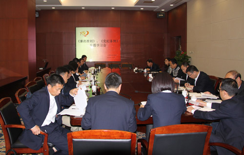 11月5日,公司党委中心组召开专题学习会,学习《中国共产党廉洁自律准则》、《中国共产党纪律处分条例》、《党政领导干部选拔任用条例》、《干部教育培训工作条例》和党的十八届五中全会精神,公司党委委员、各支部书记、公司领导班子全体成员参加学习。