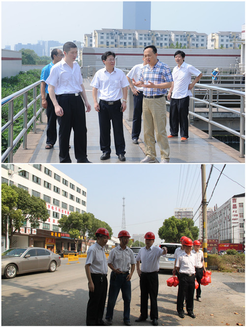 7月26上午,公司董事长龚国贤、总经理沙建新带领安全生产领导小组成员,分别来到肖山水厂、锡澄路管道施工现场、青阳加压站、南闸污水厂及云亭客服中心,检查夏季高峰供水安全工作,慰问、看望了奋战在高温一线的广大职工,送去防暑物品,带来丝丝“清凉”。