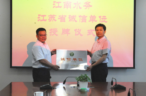 6月20日下午,江阴市市场监督管理局副局长、消费者委员会会长冯学锋为公司获得“2015-2016年度江苏省诚信单位”进行现场授牌。公司总经理华锋、副总经理吴耀东参加了授牌仪式。