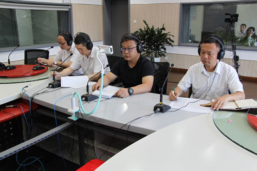 公司总经理华锋,副总经理曾武、吴耀东及质量管理部负责人来到江阴电台参加“空中热线”节目,解读轮盘赌政策,解答轮盘赌咨询,解决用水困难。