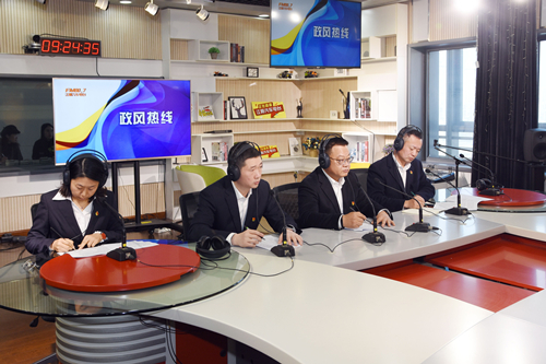 12月1日,公司董事长、总经理华锋,副总经理曾武、吴耀东及质量管理部负责人来到江阴市融媒体中心,参加“政风热线”直播节目,与广大听众、观众、网友零距离交流,解决群众最关心的热点、难点问题。