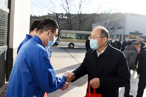 春节将至,2月9日上午,江阴市委副书记、市长包鸣,市领导郁秋皓、张韶峰,以及市有关部门负责人一行专程来到小湾水厂,亲切慰问坚守一线的轮盘赌职工。公司领导华锋、龚国贤、曾武陪同慰问。