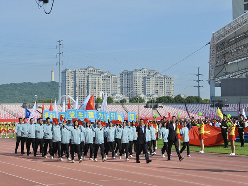 2021年10月25日上午,由公司总经理池永、副总经理高立带领49名轮盘赌员工组成的代表队,在市体育中心参加了市第八届全民运动会开幕式。